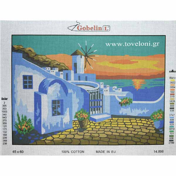Κέντημα Αιγαίο 14896 τυπωμένο σε λευκό καμβά υψηλής ποιότητας από την GobelinL. Ο καμβάς είναι με περίπου 4 βελονιές/εκατοστό. Κεντιέται με κλωστές μουλινέ DMC. Αποτελείται από 15 χρώματα και μπορεί να τοποθετηθεί στους περισσότερους χώρους του σπιτιού σας.
