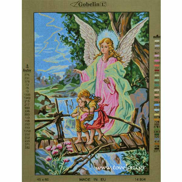 Κέντημα Φύλακας Άγγελος τυπωμένο σε καμβά υψηλής ποιότητας από την GobelinL. Κεντιέται με κλωστές μουλινέ DMC. Αποτελείται από 23 χρώματα και μπορεί να στολίσει το δωμάτιό σας, αλλά και άλλους χώρους του σπιτιού σας. Ο καμβάς είναι με περίπου 4 βελονιές/εκατοστό.