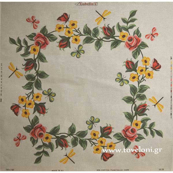 Κέντημα Καρέ 0329 τυπωμένο σε καμβά υψηλής ποιότητας από την GobelinL. Αποτελείται από καμβά σε μπεζ χρώμα με χρυσοκλωστή και είναι με περίπου 4 βελονιές/εκατοστό. Κεντιέται με κλωστές μουλινέ DMC. Αποτελείται από 10 χρώματα και μπορεί να τοποθετηθεί στους περισσότερους χώρους του σπιτιού σας.