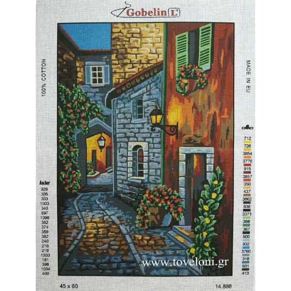 Κέντημα Σοκάκι 14888 τυπωμένο σε λευκό καμβά υψηλής ποιότητας από την GobelinL. Ο καμβάς είναι με περίπου 4 βελονιές/εκατοστό. Κεντιέται με κλωστές μουλινέ DMC. Αποτελείται από 19 χρώματα και μπορεί να τοποθετηθεί στους περισσότερους χώρους του σπιτιού σας.
