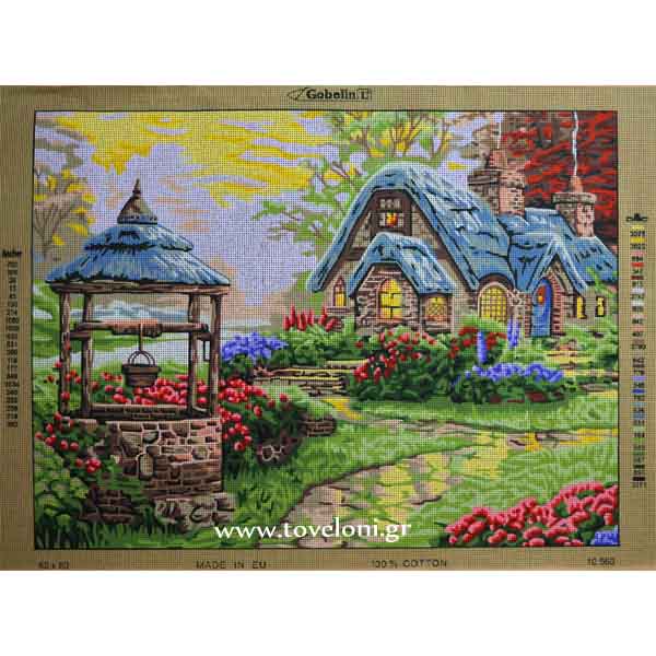 Κέντημα Σπίτι Με Πηγάδι 10560 τυπωμένο σε καμβά υψηλής ποιότητας από την GobelinL. Κεντιέται με κλωστές μουλινέ DMC. Αποτελείται από 21 χρώματα και μπορεί να στολίσει το σαλόνι σας όπως τους περισσότερους χώρους του σπιτιού σας. Ο καμβάς είναι με 4 βελονιές/cm.
