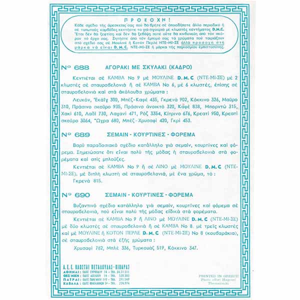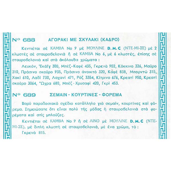 Σχέδιο Κεντήματος No157 τυπωμένο σε χαρτί από την D.M.C. για να κεντήσετε όμορφα μετρητά σχέδια. Μπορείτε να τα κεντήσετε σε καμβά, σε εταμίν ή όπου αλλού επιθυμείτε.
