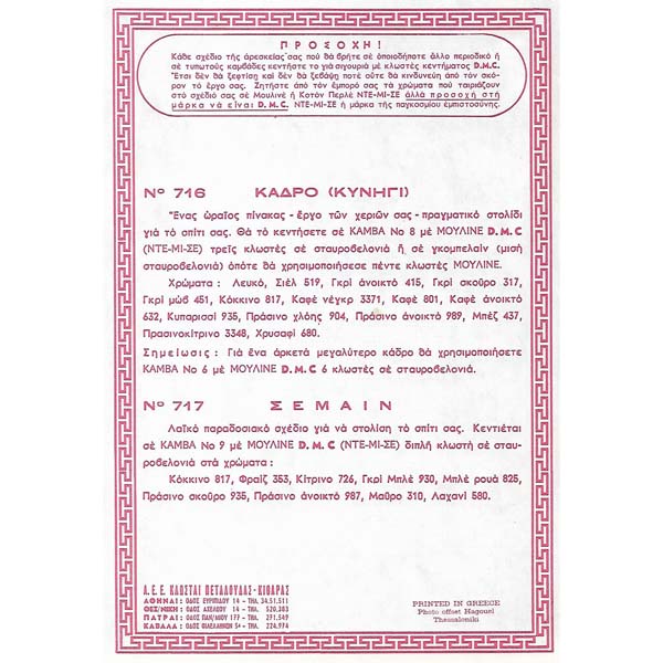 Σχέδιο Κεντήματος No163 τυπωμένο σε χαρτί από την D.M.C για να κεντήσετε όμορφα μετρητά σχέδια.
