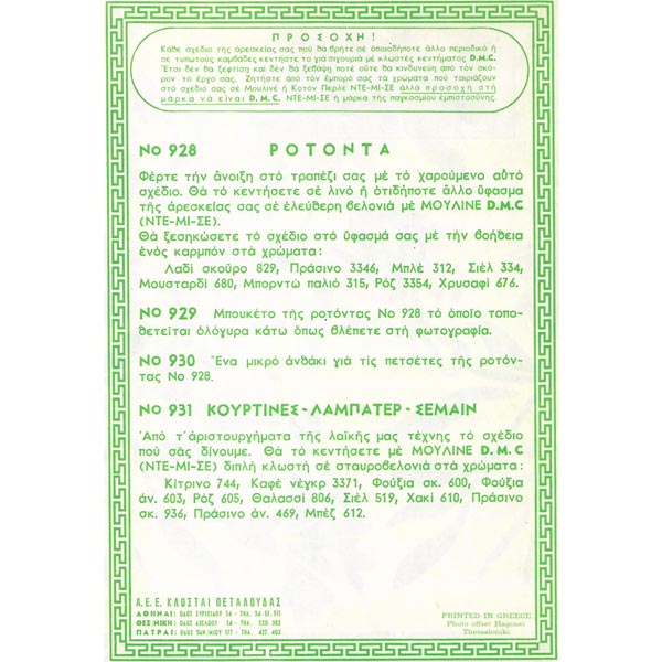 Σχέδιο Κεντήματος No219 τυπωμένο σε χαρτί από την D.M.C για να κεντήσετε όμορφα μετρητά σχέδια.