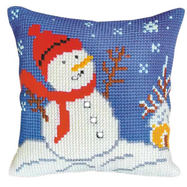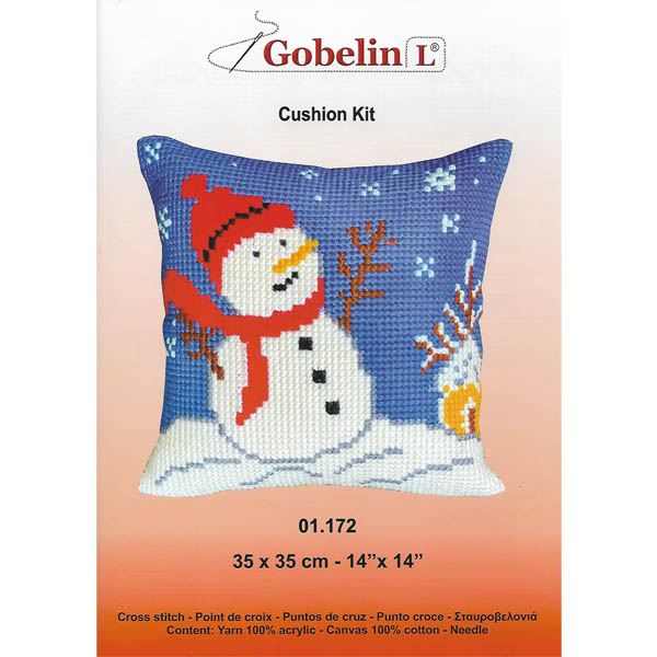 Μαξιλάρι Κιτ Χιονάνθρωπος 172 για κέντημα τυπωμένο σε καμβά υψηλής ποιότητας από την GobelinL. Κεντιέται με σταυροβελονιά. Το κιτ περιέχει καμβά από 100% βαμβάκι, κλωστές υψηλής ποιότητας 100% ακρυλικές, οδηγίες κεντήματος και ένα βελόνι.